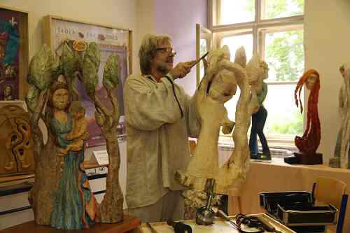 Člověk se v průběhu života mění. Dnes nějak víc vnímám světla kolem sebe a moje sochy mají taky rády barevnost. Používám většinou vosky s patinovanou olejovou polychromií. Dřeva výrazně barevná již svojí podstatou nechávám přírodním stavu s olejovým povrchem který zvýrazní kresbu.